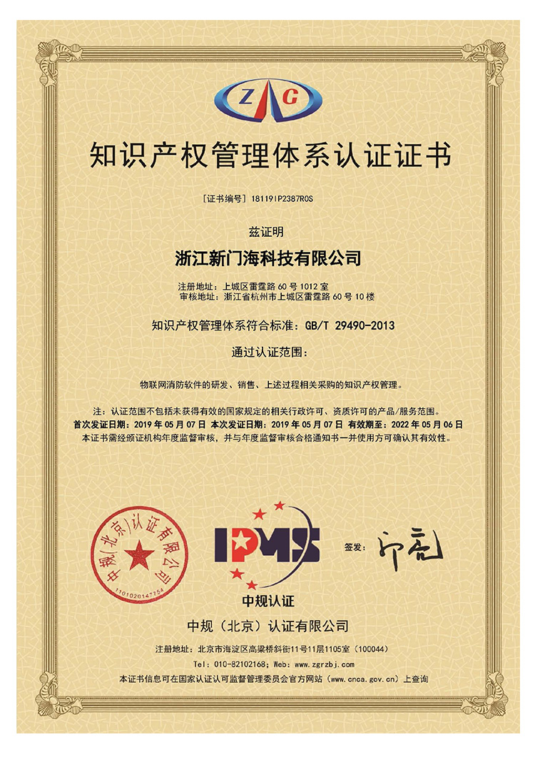 知识产权管理体系认证证书