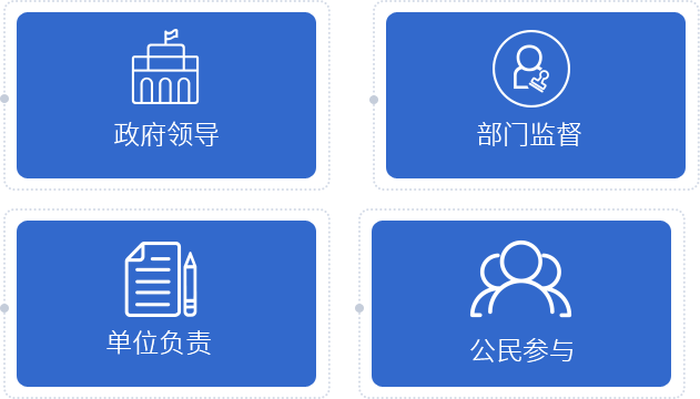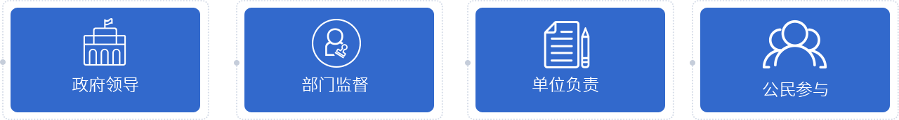 我国消防工作采用十六字方针,即政府领导,部门监督,单位负责,公民参与。事实上,消防安全管理并非政府或其他一方的事情,而是各级政府及应急消防部门、社会单位及其主要 负责人、第三方服务机构,以及每一个公民和家庭均应履行各自消防责任。